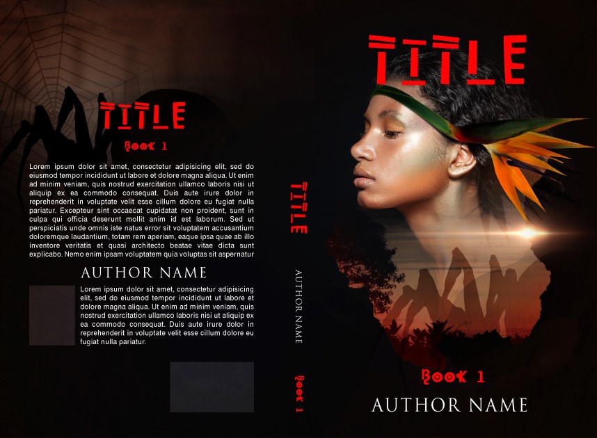 Spiders, jungle, African plains, voodoo, native people, love and danger and adventures. This book cover design can cover many stories. Warm colors and shadow effects makes it intriguing but also eye-catching.